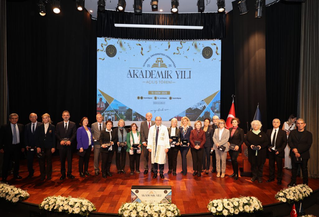 İstanbul Üniversitesi-Cerrahpaşa 2025–2026 Akademik Yılı Açılış Töreni kapsamında, 2025 yılında emekliye ayrılan değerli öğretim üyelerimize emeklilik ve tebrik kartları, Rektör Prof. Dr. Nuri Aydın tarafından sahnede takdim edildi. Akademiye uzun yıllar boyunca sundukları katkılar için kendilerine duyulan teşekkür, törende özel bir bölümle vurgulandı.